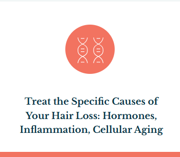 We target the root causes of hair loss in women: hormones, inflammation, and cellular aging.